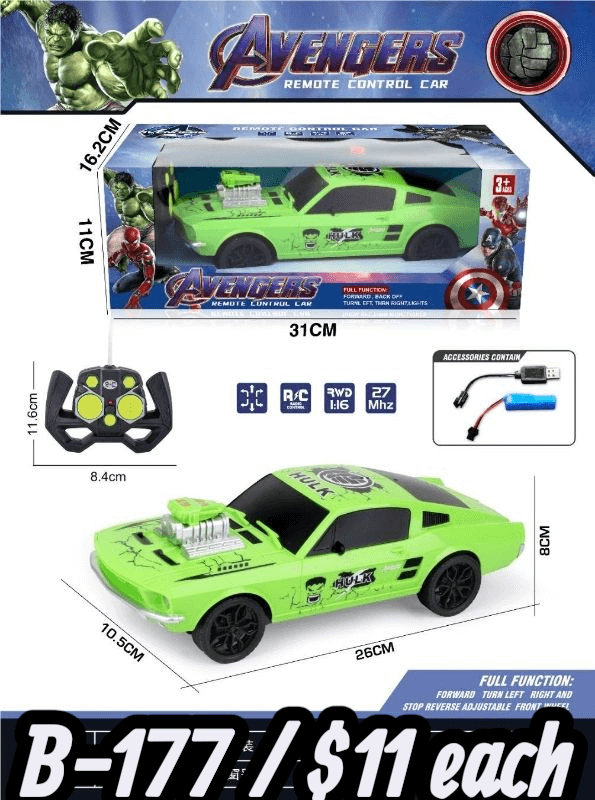 Unleash the power of the Hulk with the Avengers Hulk RC Racing Car! This bright green sports car is designed for speed, style, and superhero fun. Equipped with a full-function remote, kids can drive forward, reverse, turn left or right, and stop with precision. The realistic details, bold Avengers graphics, and strong build make it perfect for exciting races indoors and outdoors. Its rechargeable battery ensures long-lasting playtime. Ideal for kids aged 3 and above, this toy encourages active play, hand-eye coordination, and imaginative superhero adventures. A perfect gift for little racers and Marvel fans!