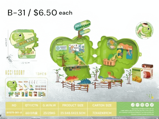 The B-31 Dinosaur Adventure Playset is an exciting 3-in-1 toy that brings the world of dinosaurs to life! 🦕✨ Packed inside a cute dinosaur-shaped carrying case, this set opens up into a fun prehistoric park with fences, trees, and realistic dinosaur figures. Kids can create their own dinosaur stories, explore imaginative adventures, and learn about ancient creatures. Perfect for travel and easy storage, it’s lightweight and durable. Great for enhancing creativity, storytelling, and motor skills. Safe and fun for children aged 3 and above. A fantastic gift for little dino lovers!