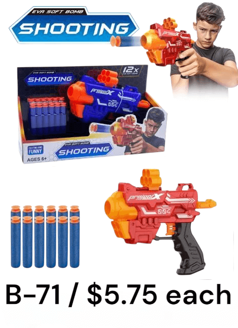 The B-71 EVA Soft Bomb Shooting Gun is an exciting toy blaster designed for safe and fun battles! Perfect for kids aged 6 and above, it comes with 12 soft foam darts that are safe for indoor and outdoor play. The lightweight and ergonomic design make it easy to handle, while the powerful spring action ensures accurate shooting. Kids can enjoy action-packed playtime while improving aim, coordination, and focus. Great for friendly competitions or solo target practice, this blaster offers hours of entertainment. Made from durable, child-safe materials — perfect for young adventurers and shooting game lovers!