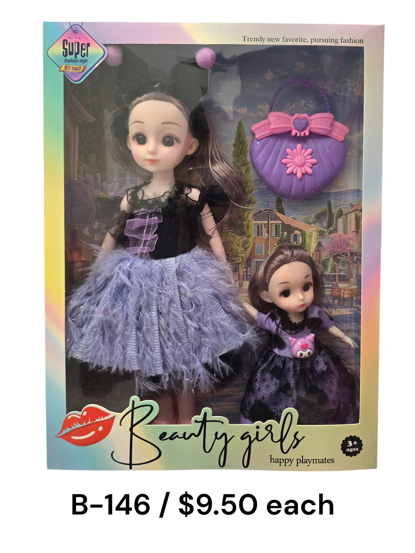 The  Beauty Girls Doll Set is a delightful toy set featuring two elegant dolls dressed in matching blue outfits, perfect for stylish pretend play. With their beautiful dresses and cute accessories, these dolls inspire creativity and storytelling in young children. Designed for ages 3 and above, the set encourages imaginative play, fashion fun, and bonding time. The high-quality, child-safe materials ensure durability and safe play. Ideal for birthdays, parties, or special occasions, this doll set makes a wonderful gift for any young girl who loves fashion, beauty, and fun adventures with her favorite playmates.