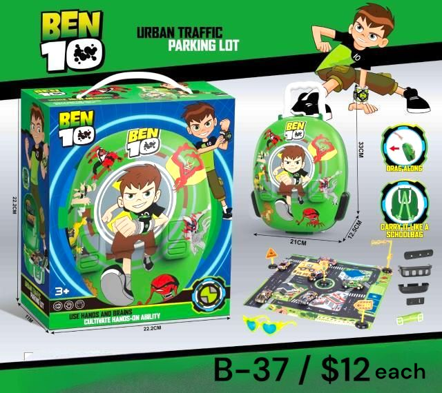 The Ben 10 Urban Traffic Parking Lot is a fun and interactive playset designed for kids aged 3 and above. This compact and portable toy transforms into a full parking lot with tracks, ramps, and road signs for imaginative play. Shaped like a mini suitcase, it’s easy to carry or drag along like a backpack. Featuring vibrant Ben 10 graphics and easy assembly, it helps improve hand-eye coordination and creative thinking. Perfect for at-home or on-the-go entertainment, this set keeps your child engaged while encouraging motor skill development. A great gift for any young Ben 10 fan!
