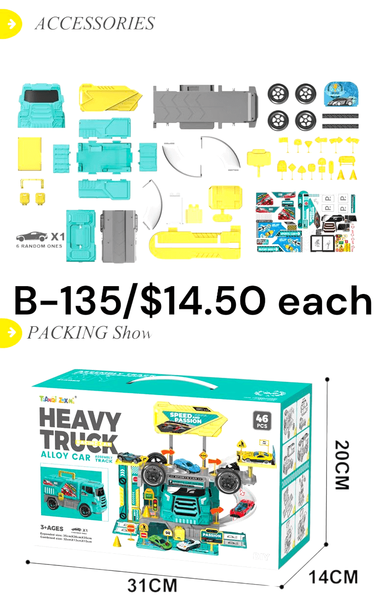 Heavy Truck Alloy Car DIY Garage Playset – 46 PCS