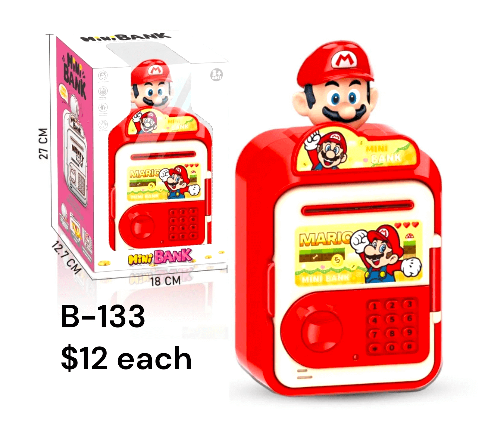 Make saving fun with the Mario Mini ATM Piggy Bank! This adorable electronic bank comes with a keypad and automatic note intake, making kids excited to save their money. Inspired by the playful Mario theme, it’s both entertaining and educational — helping children learn basic saving habits. The compact design makes it easy to place on a desk or shelf, and the bright red color gives it a fun, playful look. A perfect gift for birthdays, holidays, or everyday surprises!