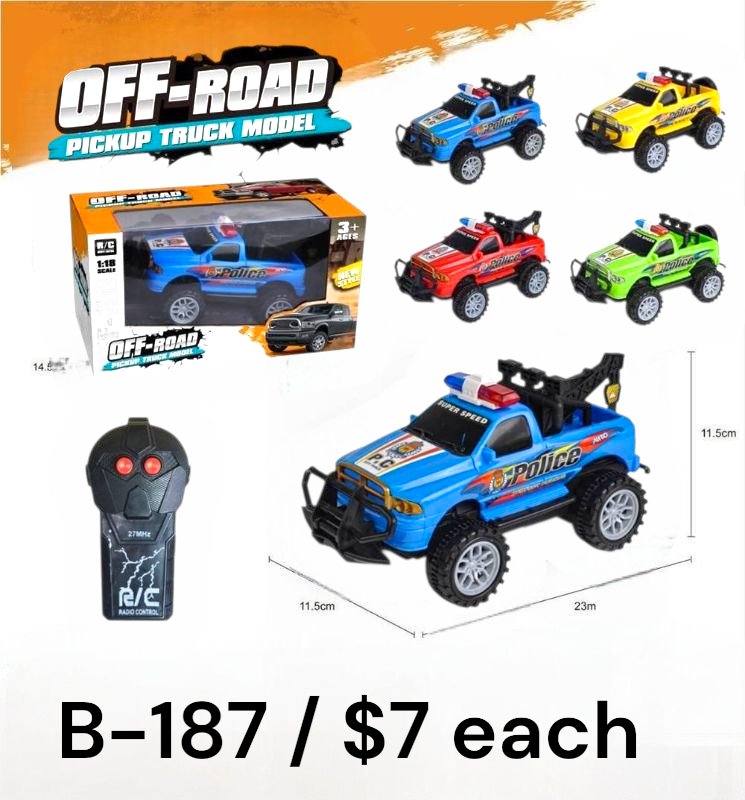 Get ready for adventure with this Off-Road RC Pickup Truck! Built with a powerful motor and rugged tires, this truck is perfect for exciting races and off-road fun. Its sturdy design lets kids drive it over rough surfaces, while the easy-to-use remote control ensures smooth and responsive steering. Available in bold colors like blue, red, yellow, and green, it’s an eye-catching toy for kids who love action. The realistic police design adds extra excitement to every race. Ideal for children aged 3 and up, this RC truck makes the perfect gift for birthdays and outdoor playtime fun.