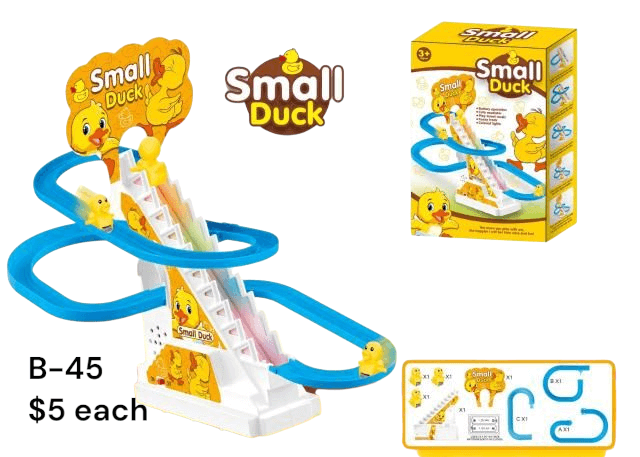 The B-45 Small Duck Slide Playset brings endless fun and joy for kids! 🐤 Watch the adorable little ducks climb up the stairs and slide down the winding track again and again. This interactive toy encourages imaginative play and helps develop motor skills in a fun way. It’s easy to assemble and made from child-safe, durable plastic. Perfect for ages 3 and up, this cute duck race set will keep little ones entertained for hours. Ideal for birthday gifts, party favors, or everyday playtime fun. Bright colors and cheerful design make it a favorite for kids!